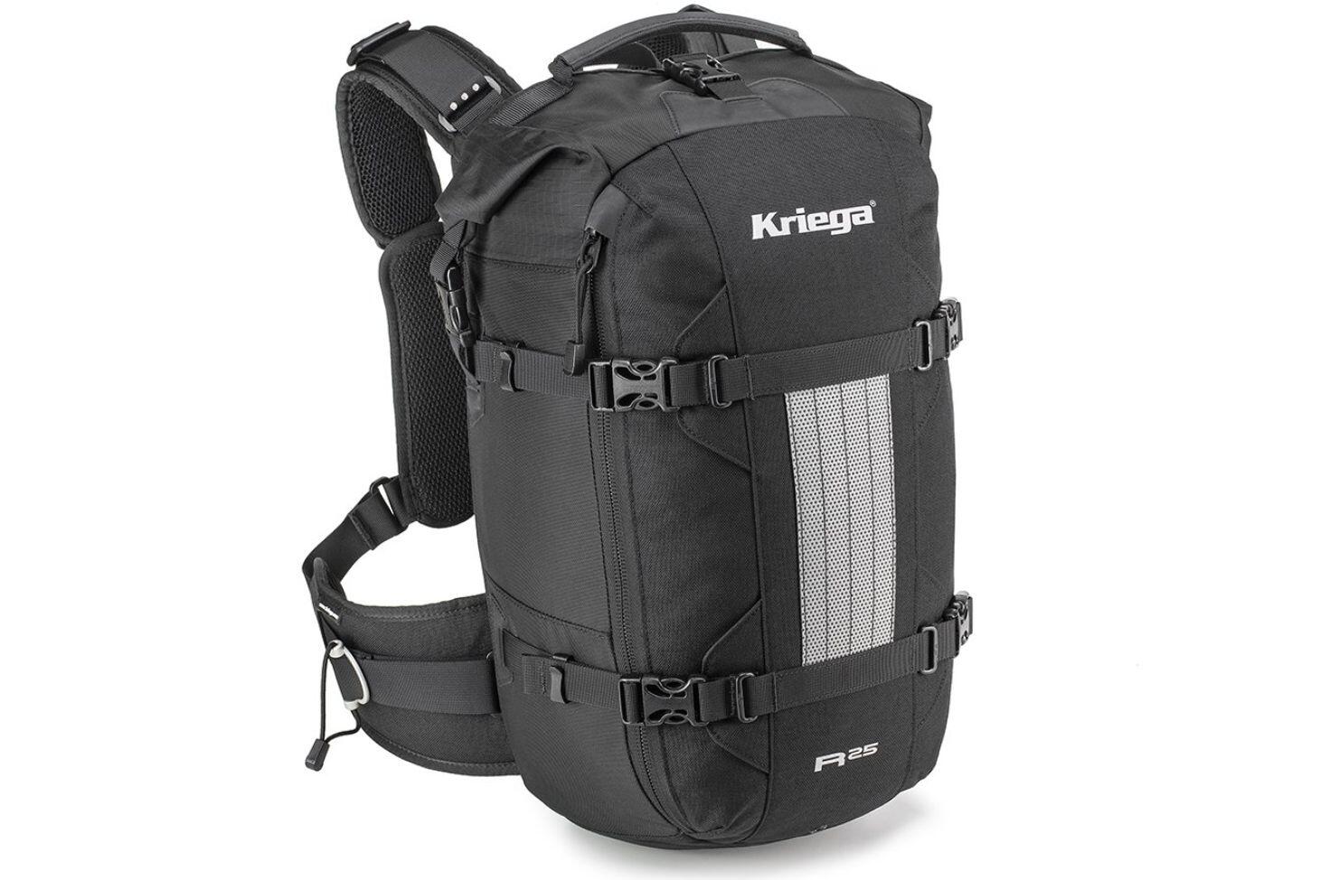 The R25 V2 Backpack is built with 420D Cordura® Lite fabric and a 1000D Cordura® base, featuring a waterproof main compartment and Kriega's signature Quadloc™ harness system, making it ideal for long-distance, all-weather riders.